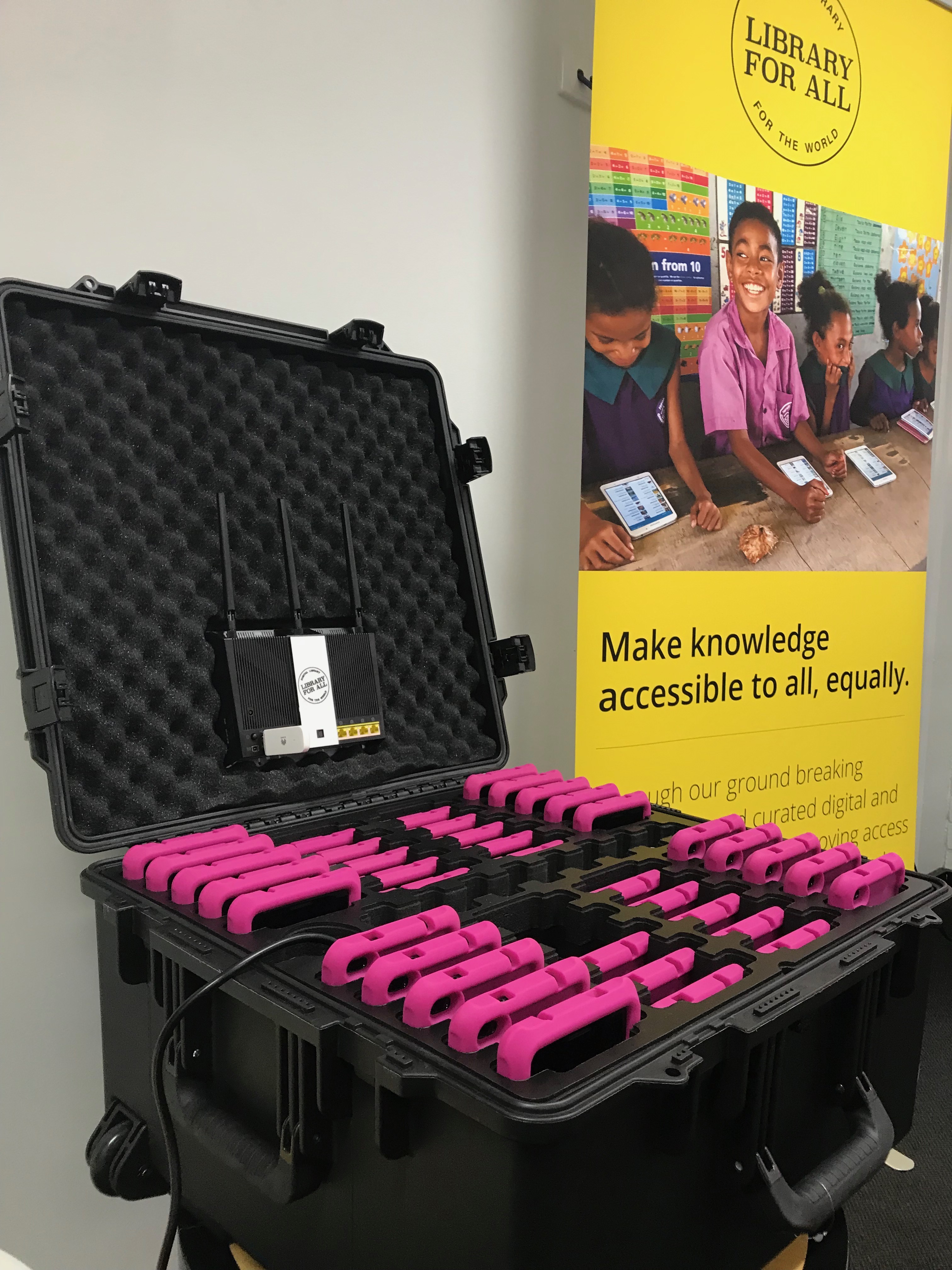 The robust black box was bespoke designed for humid climates along with sturdy tablets ready for eager readers’ hands.
